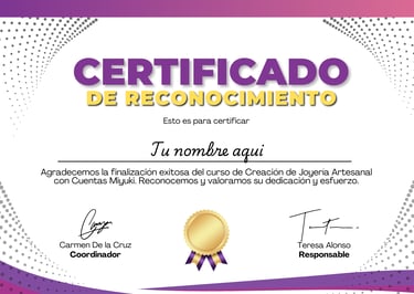 Certificado de finalización personalizado con tu nombre 8 días después de adquirir el programa.